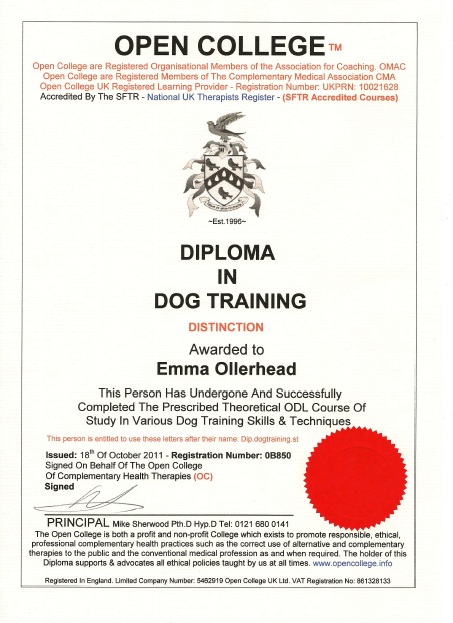 Psychology and a Diploma in Dog Training. She is also a keen follower of John Fisher and Victoria Stillwell (It’s